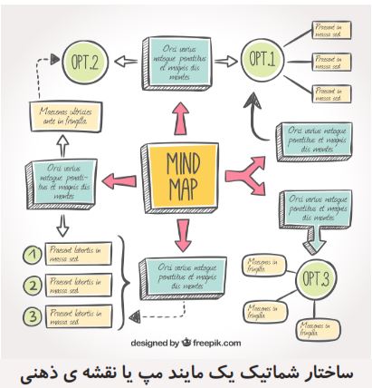 5. در حین یادداشت برداری هم میتونید از مایند مپ یا نمودار درختی استفاده کنید، و اگه بعد از اینکه روی مطلب مسلط شدین و خواستین خلاصه نویسی کنید، دیدین این نموداری که حین یادداشت برداری نوشتین خوبه، میتونید اون رو وارد خلاصه اتون هم بکنید.