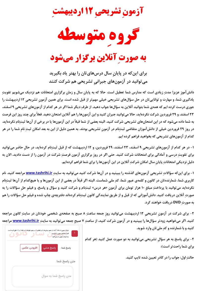 نحوه ی شرکت در آزمونهای تشریحیِ 12 اردیبهشت