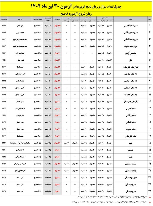 زمان مشاهده کلید و پاسخ تشریحی آزمون در صفحه شخصی : ساعت 16