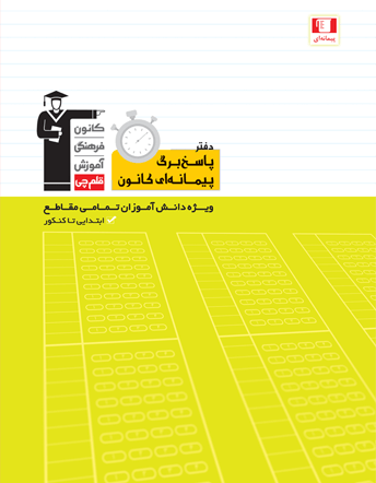 ✔ امکان مشخص کردن نام درس، کتاب و مبحث آزمون ✔ امکان ثبت روز و تاریخ برگزاری آزمون ✔ امکان تعیین تعداد سولات درست، نزده و غلط پس از برگزاری آزمون ✔ امکان مشخص کردن درصد برای هر پیمانه ✔ امکان یادداشت کردن شماره سوال کتاب مورد نظر در دفتر پاسخبرگ ✔ امکان تصحیح هر سوال با المانهای مخصوص ✔ امکان مشخص کردن مباحث نیاز به تلاش بیشتر در پاسخبرگهای پیمانهای ✔ امکان مشخص کردن سوالات جهت مرور مجدد